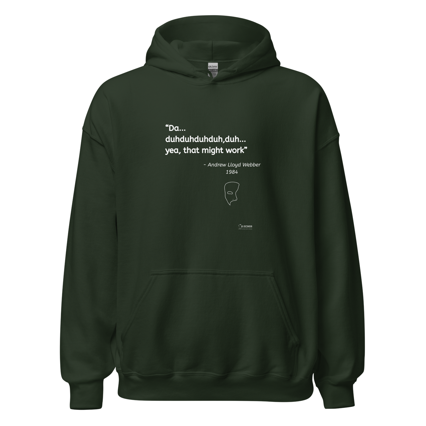 Cold rehearsals? Drafty green rooms? Existential crises about your overture? This ultra-soft hoodie has you covered—literally and emotionally. With Andrew Lloyd Webber’s probably-never-said quote, "Da…duhduhduhduh,duh…yea, that might work," printed front and center, it’s the perfect blend of composer energy and hoodie-level comfort. Equal parts dramatic and cozy, it's what you'd wear while writing your magnum opus—or just bingeing musicals with snacks and judgment.