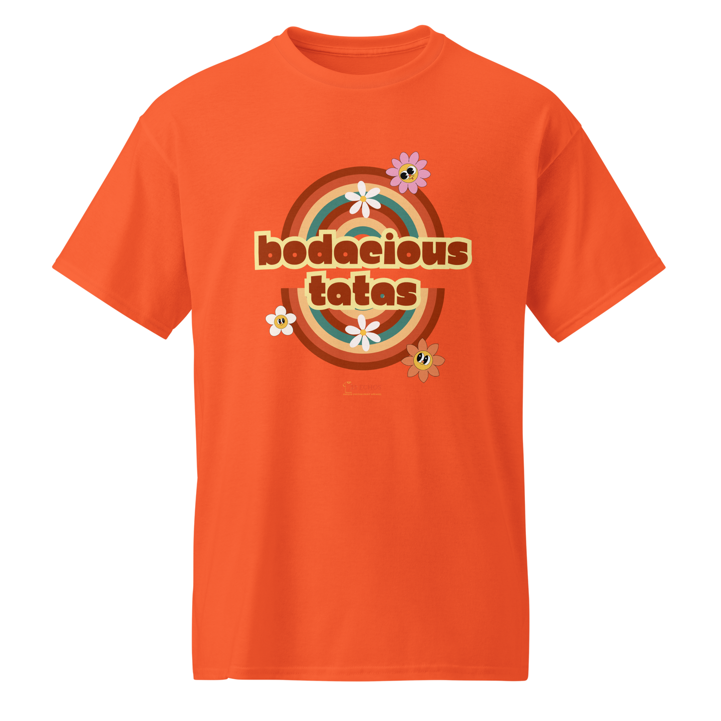 Loud, proud, and totally bodacious—this tee brings the sass with a retro wink and a whole lotta confidence. Whether you're blessed in the chest or just love a good double entendre, our Bodacious Tatas shirt is made to turn heads and spark laughs. With a vintage vibe and a nod to classic Gen X slang, it’s the perfect blend of flirty and funny. Rock it at brunch, the beach, or your next girls’ night out—because life’s too short not to celebrate the curves and the comedy.