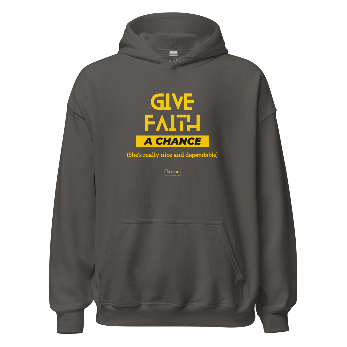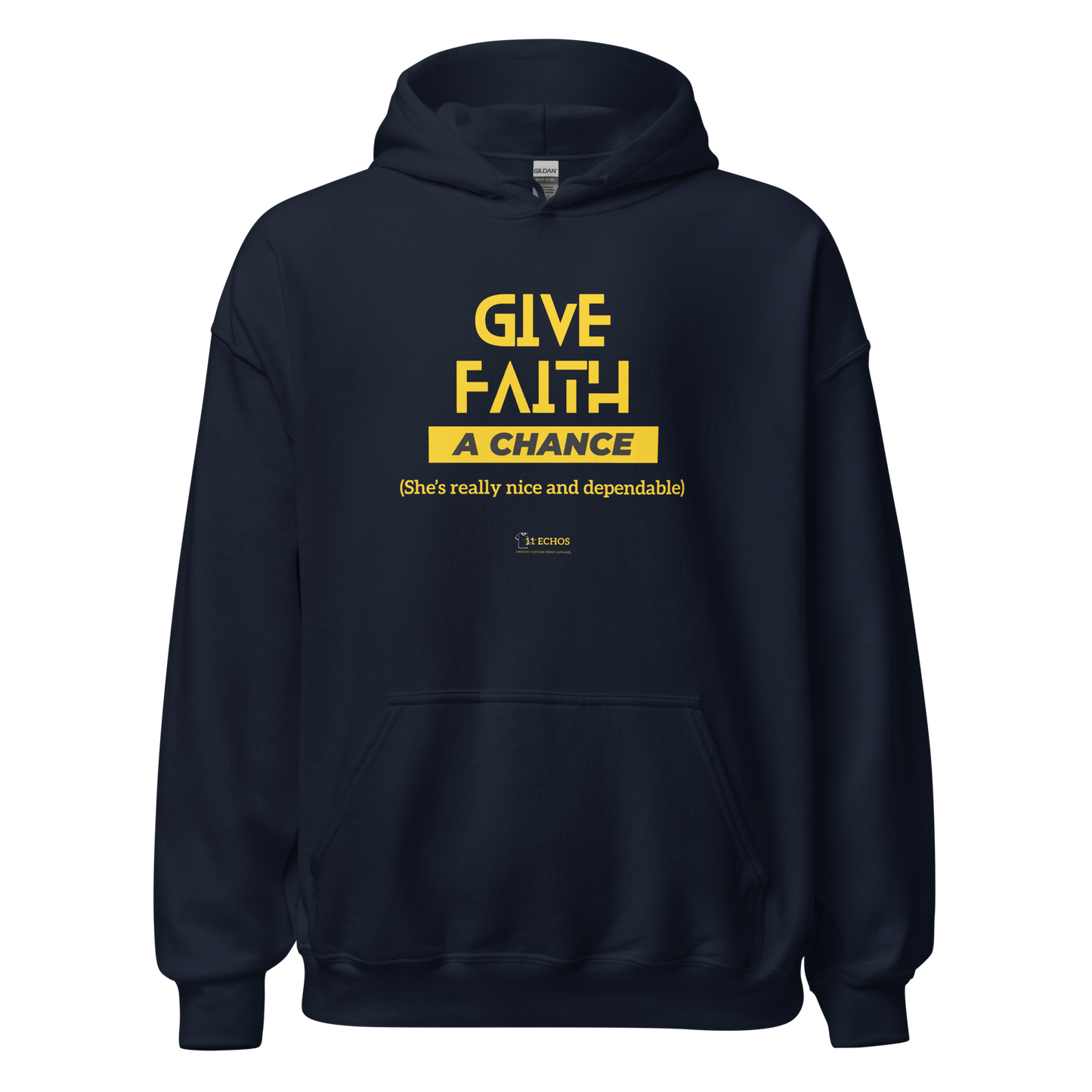 Sometimes, all you need is a little faith—and we’re not just talking about the concept. Our “Give Faith a Chance” hoodie adds a hilarious twist with the tagline: (She’s really nice and dependable). Whether you're a believer in good vibes, divine timing, or just love a clever pun, this shirt is your new go-to. It’s perfect for spreading laughs, light, and just a touch of inspiration. Wear it proudly and let the world know: faith isn’t just a virtue—it’s a total gem.