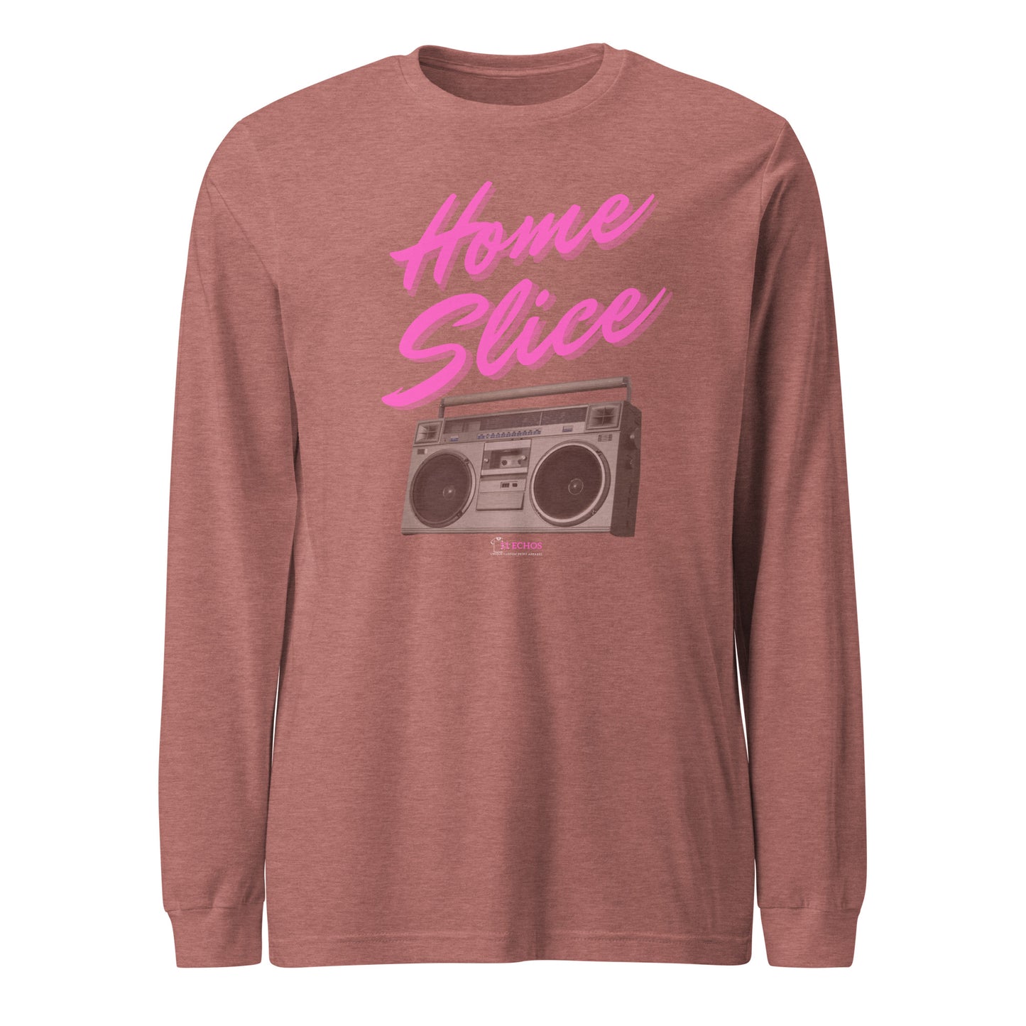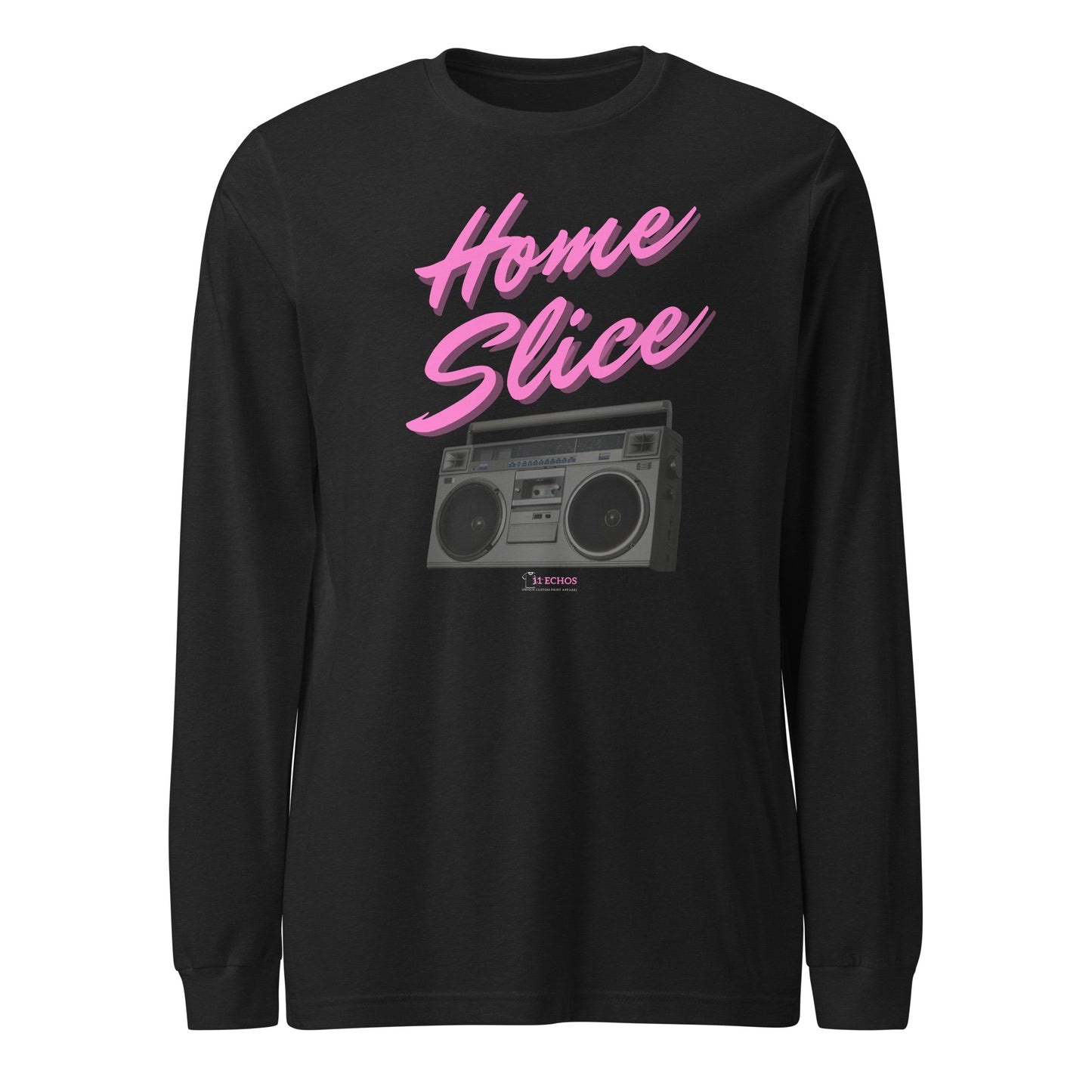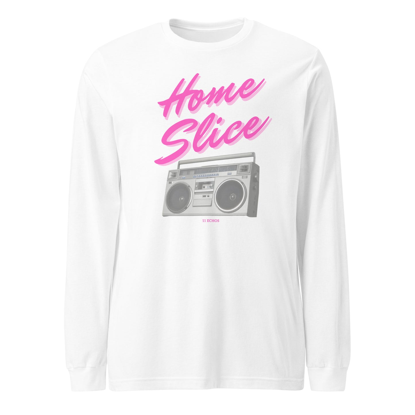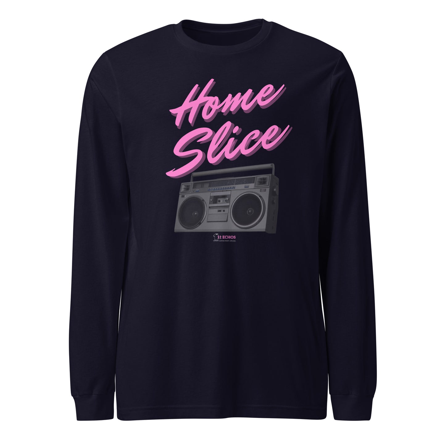 Crank up the volume and throw it back with our Home Slice tee—your ultimate shoutout to old-school vibes and ride-or-die friendships. Featuring a retro boombox that's ready to blast your favorite cassette jams, this shirt is pure Gen X gold. Whether you’re chillin’ with your crew, flipping through vinyl, or just reminding the world who kept it real before social media, this long sleeve tee’s got your back. Comfy, cool, and served with extra cheese—because every era had a slice, but Gen X made it iconic.