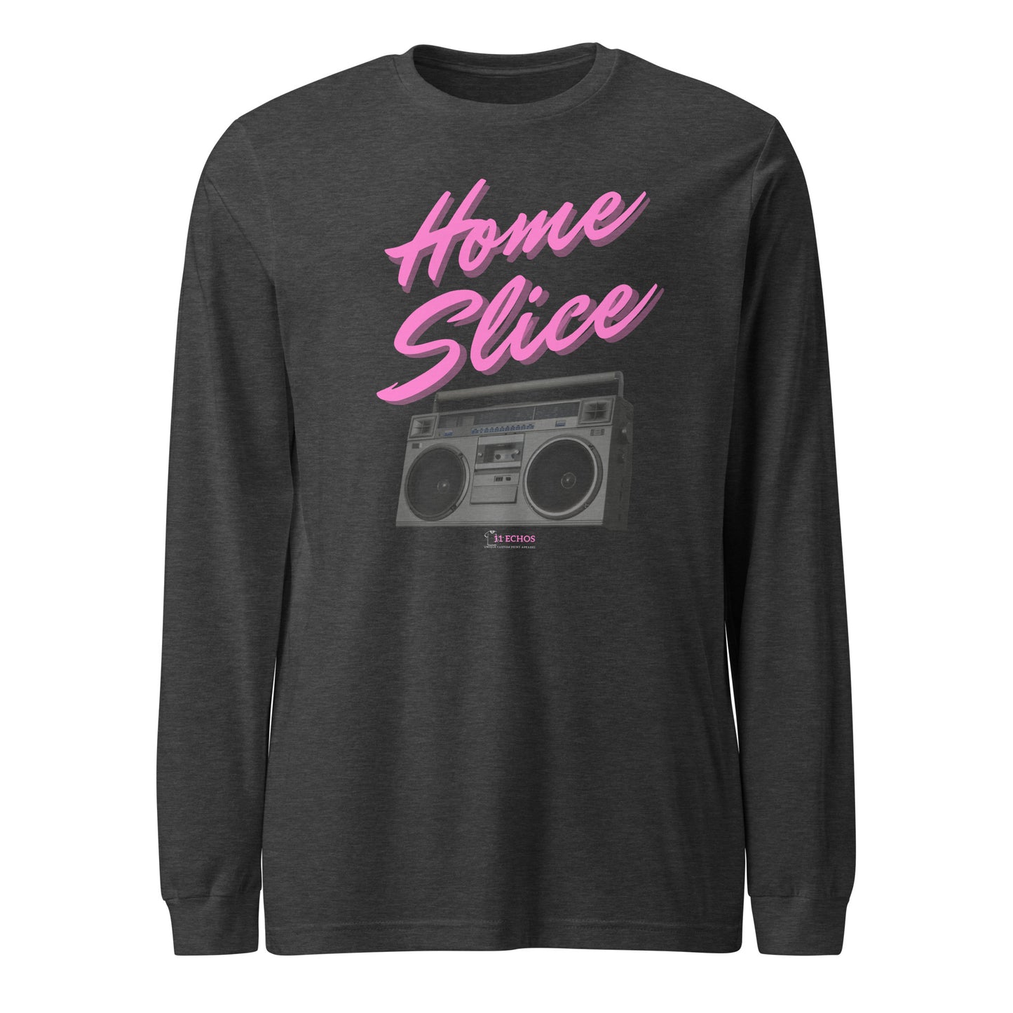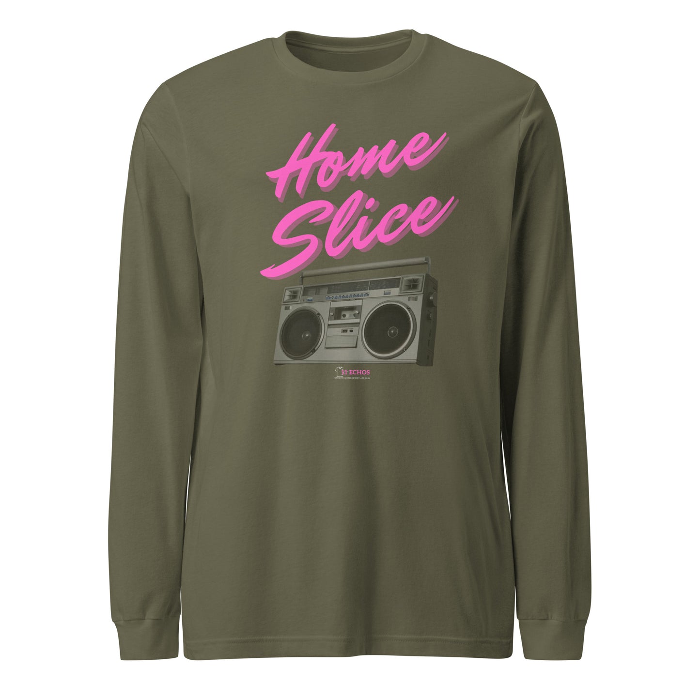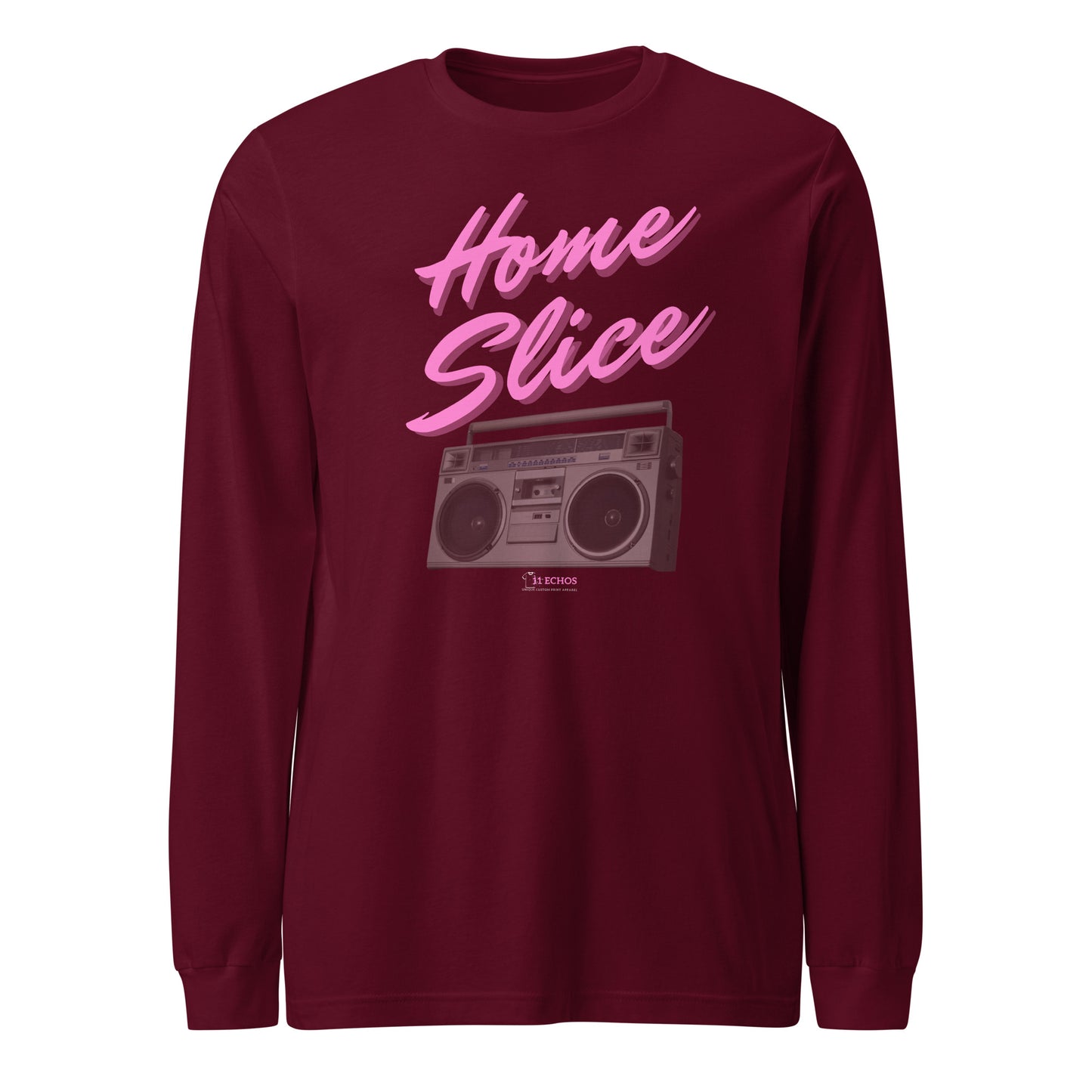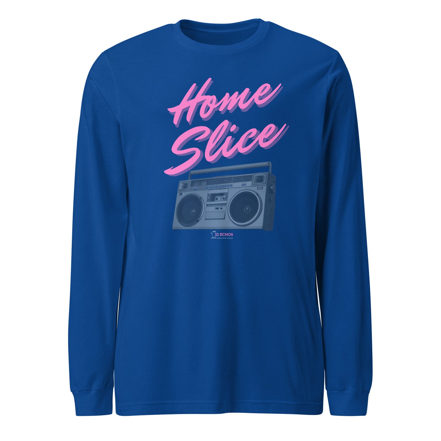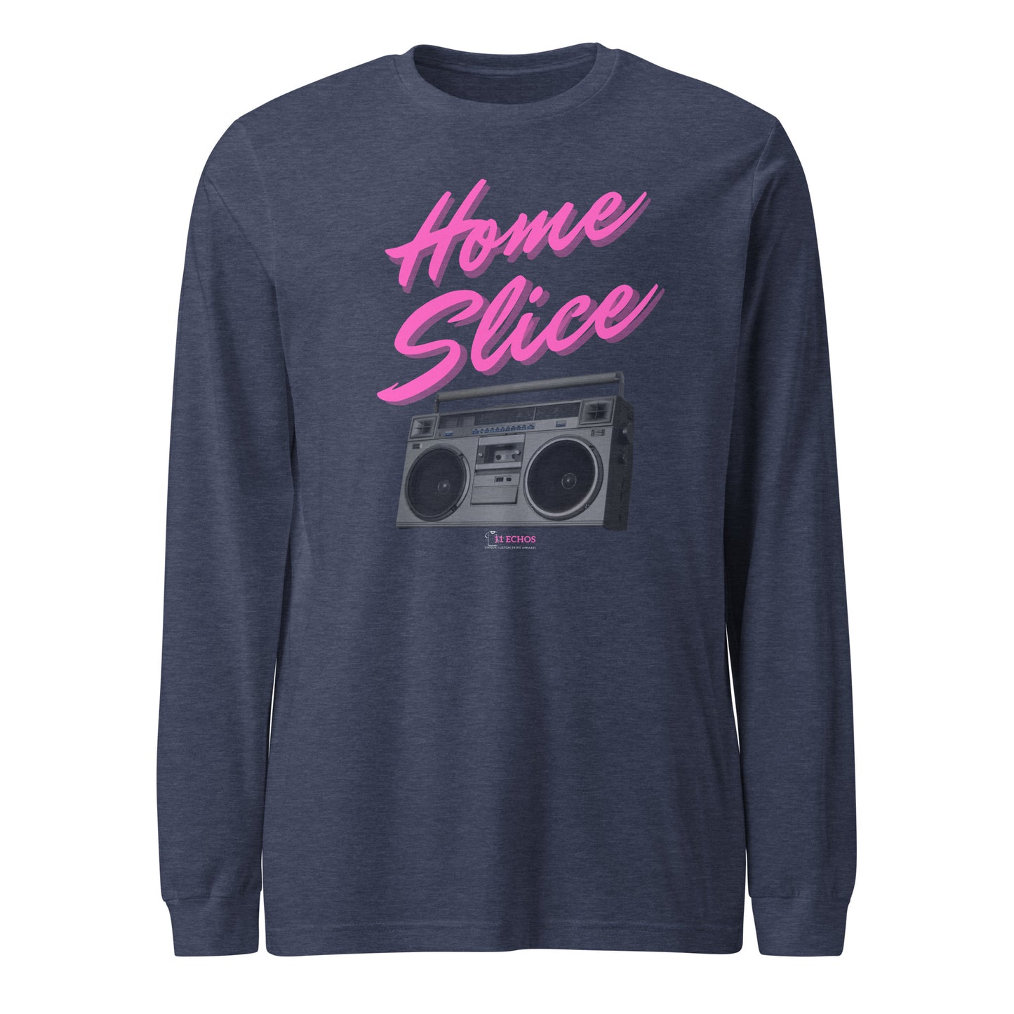 Crank up the volume and throw it back with our Home Slice tee—your ultimate shoutout to old-school vibes and ride-or-die friendships. Featuring a retro boombox that's ready to blast your favorite cassette jams, this shirt is pure Gen X gold. Whether you’re chillin’ with your crew, flipping through vinyl, or just reminding the world who kept it real before social media, this long sleeve tee’s got your back. Comfy, cool, and served with extra cheese—because every era had a slice, but Gen X made it iconic.