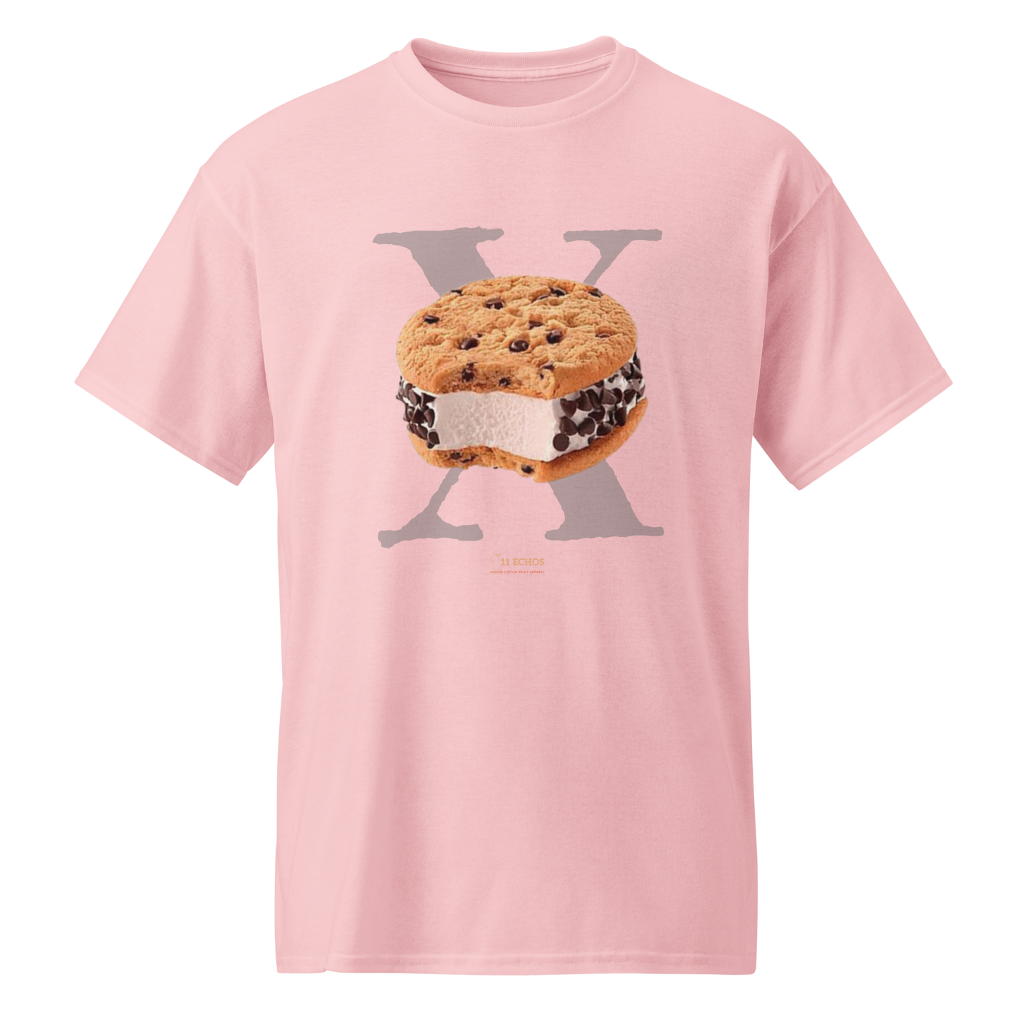 Nothing says Gen X summer like chasing down the ice cream truck with a pocket full of change and coming back triumphantly with a chocolate chip ice cream sandwich. Two chewy cookies hugging a slab of vanilla bliss — the ultimate reward for surviving sprinkler marathons, Slip ’N Slide wipeouts, and endless games of kickball. This shirt is a wearable bite of nostalgia, celebrating the sweet, sticky freedom of our childhoods. Gen X grew up knowing that the best things in life came wrapped in wax paper and melted faster than you could eat them.