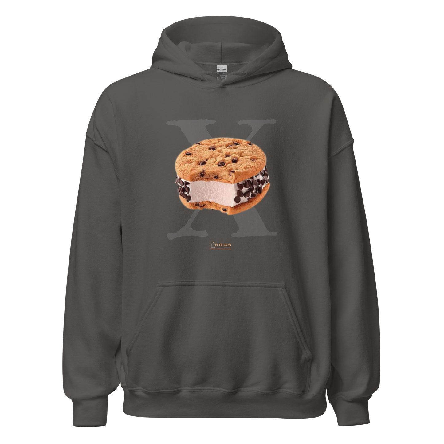 Nothing says Gen X summer like chasing down the ice cream truck with a pocket full of change and coming back triumphantly with a chocolate chip ice cream sandwich. Two chewy cookies hugging a slab of vanilla bliss — the ultimate reward for surviving sprinkler marathons, Slip ’N Slide wipeouts, and endless games of kickball. This hoodie is a wearable bite of nostalgia, celebrating the sweet, sticky freedom of our childhoods. Gen X grew up knowing that the best things in life came wrapped in wax paper and melted faster than you could eat them.