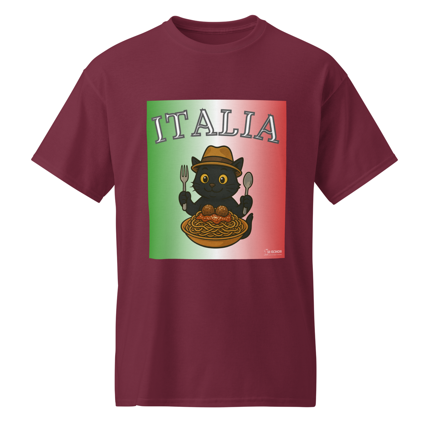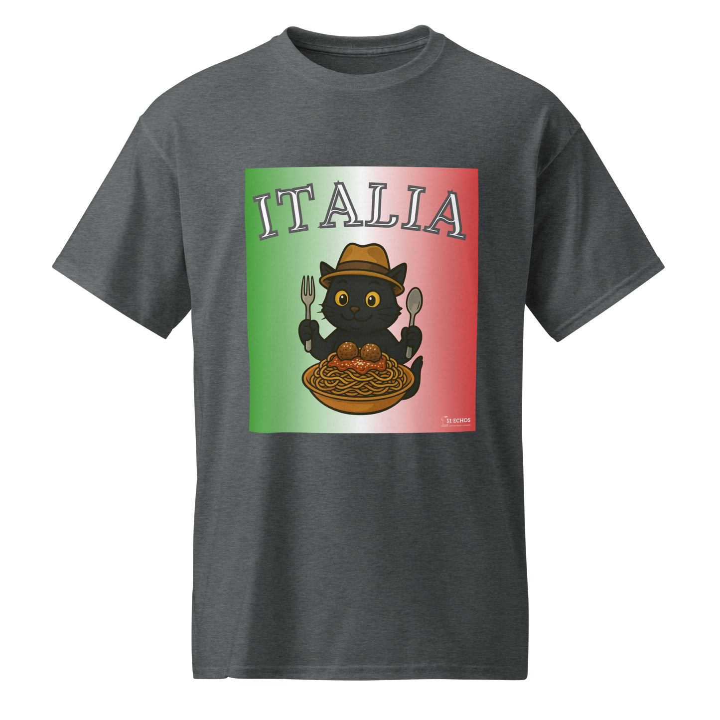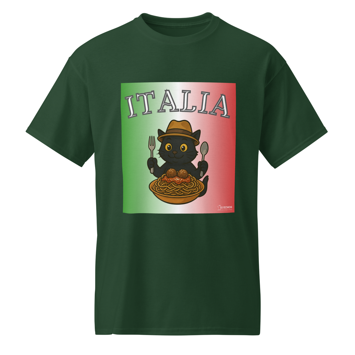 Mangia, meow! Our "Spaghetti Cat Italia" t-shirt serves up a hilarious helping of feline chaos and Italian flavor. Picture this: a saucy cat going to town on a mountain of spaghetti and meatballs, mid-slurp, with marinara on its fur and zero shame. Behind the madness waves the proud Italian flag, reminding everyone that this culinary crime scene is a full-blown tribute to La Dolce Vita. Whether you're a pasta lover, a cat person, or just someone who appreciates absurd fashion statements, this tee is the purr-fect recipe for laughter and style. Bellissimo!
