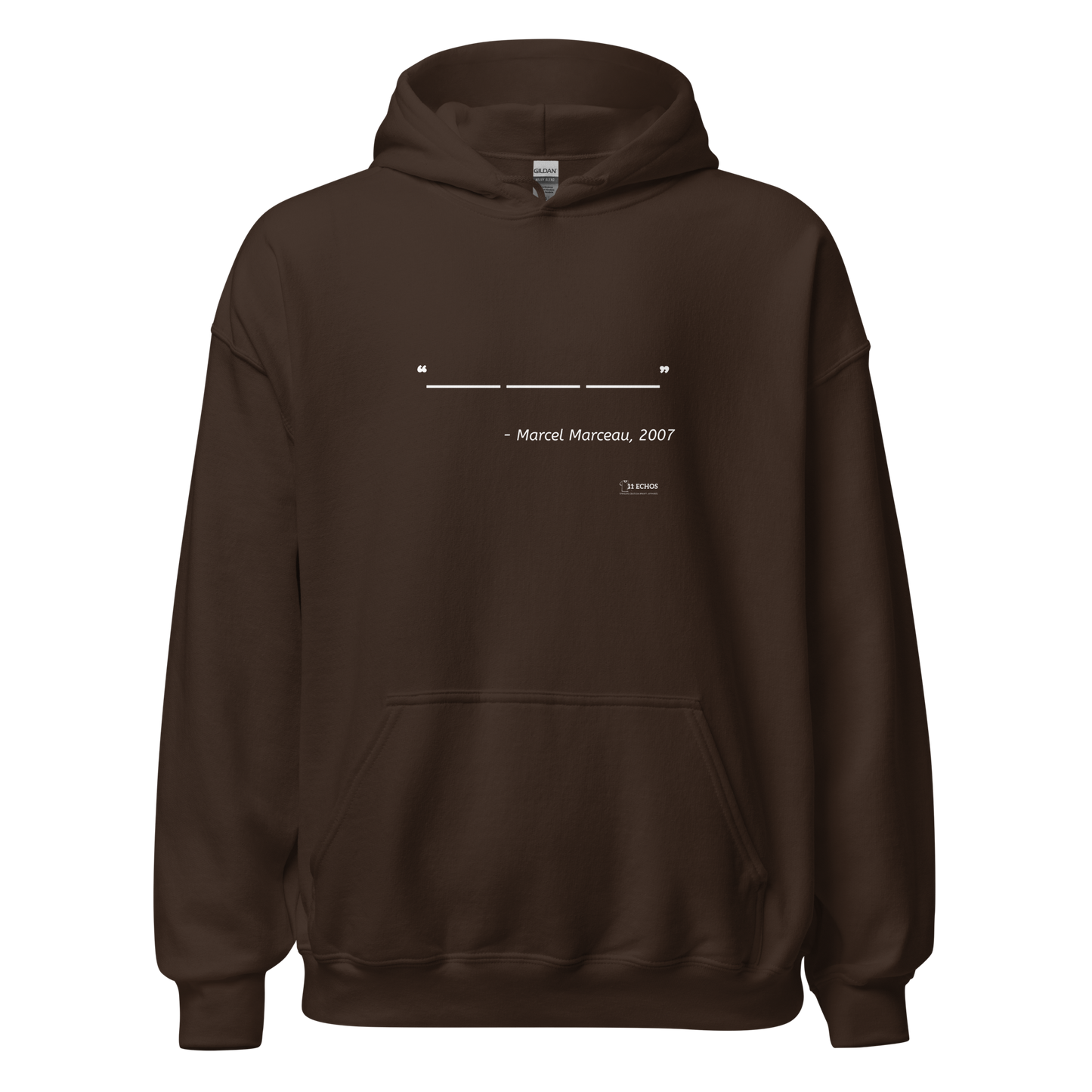 Warm, cozy, and gloriously speechless—just like the man himself. This hoodie features Marcel Marceau’s iconic “quote” “_____ _____ _____” in all its quiet glory. It’s the ultimate nod to those who express themselves through awkward glances, side-eyes, and passive-aggressive body language. Whether you're braving the cold or just dodging unnecessary conversations, this hoodie does all the talking for you—by saying absolutely nothing.