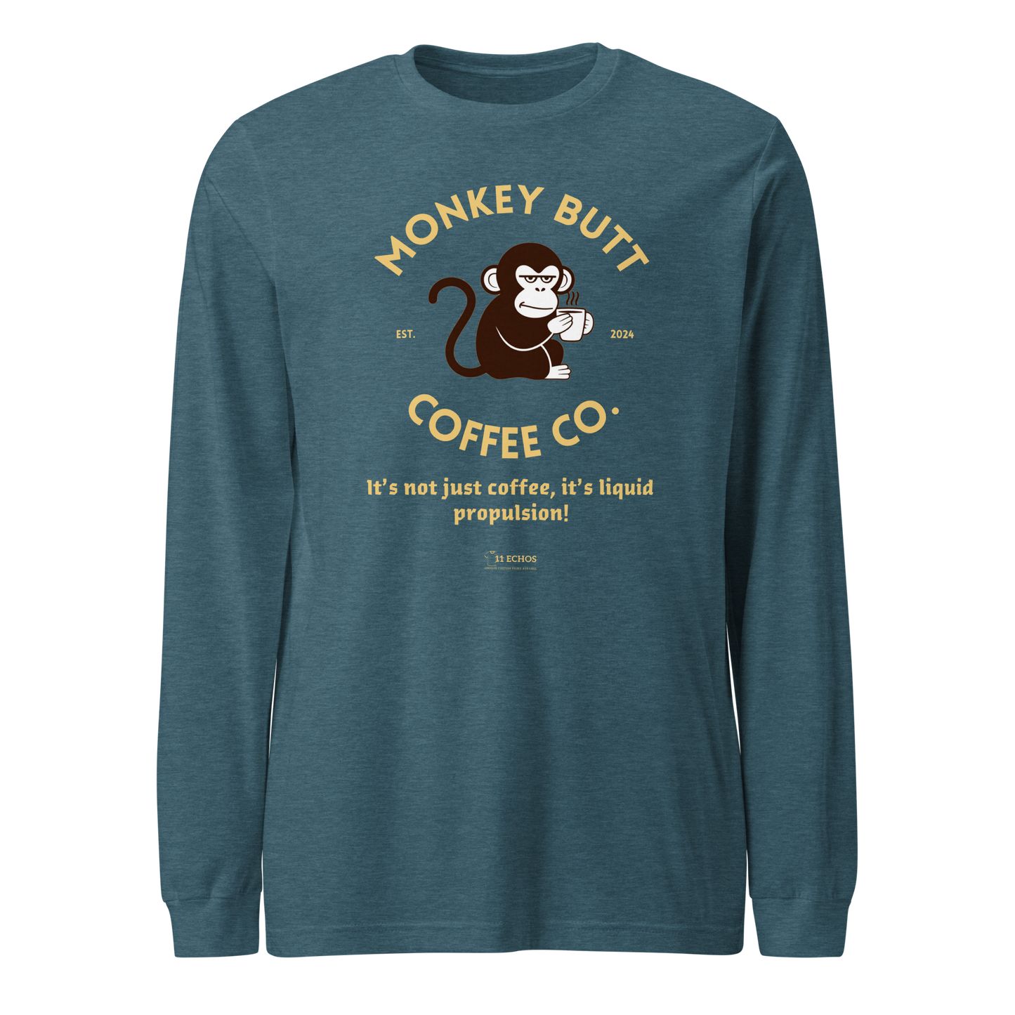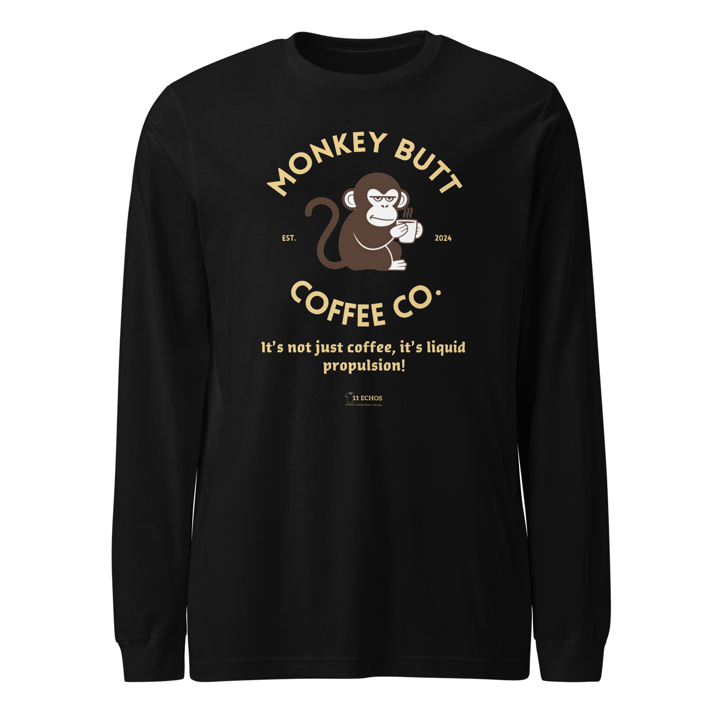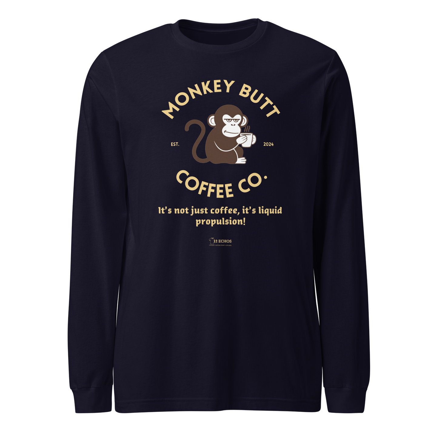 Fuel your day the only way that makes sense—with Monkey Butt Coffee: Liquid Propulsion. This long sleeve tee is for the caffeine-addicted, sarcasm-infused, zero-sleep warriors who know that real power comes in a cup... or a gallon. Packed with adult humor and high-octane attitude, this funny shirt makes a perfect gift for anyone who treats coffee like rocket fuel and mornings like a combat zone. Warning: may cause uncontrollable energy and questionable decisions.