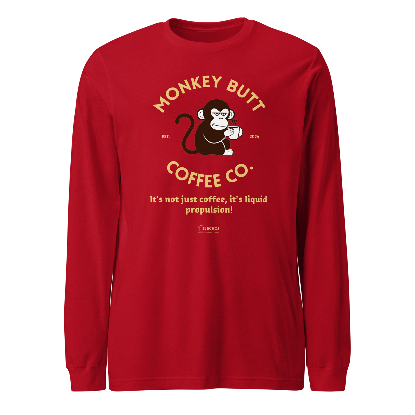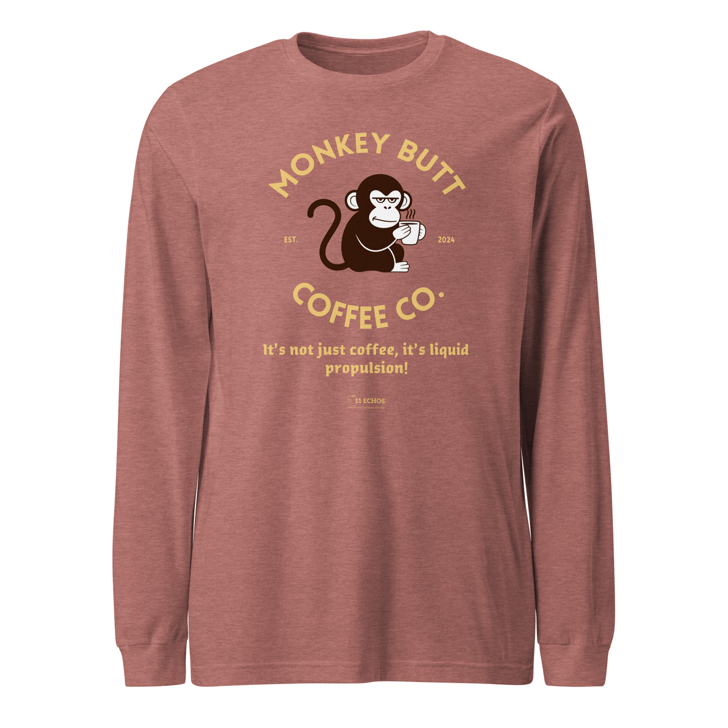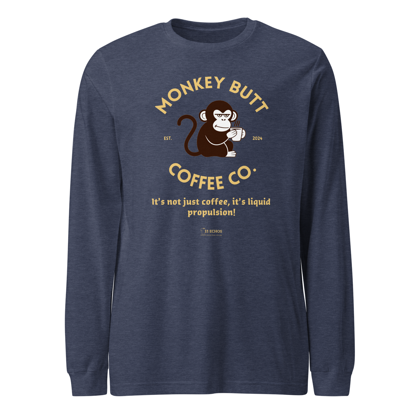 Fuel your day the only way that makes sense—with Monkey Butt Coffee: Liquid Propulsion. This long sleeve tee is for the caffeine-addicted, sarcasm-infused, zero-sleep warriors who know that real power comes in a cup... or a gallon. Packed with adult humor and high-octane attitude, this funny shirt makes a perfect gift for anyone who treats coffee like rocket fuel and mornings like a combat zone. Warning: may cause uncontrollable energy and questionable decisions.