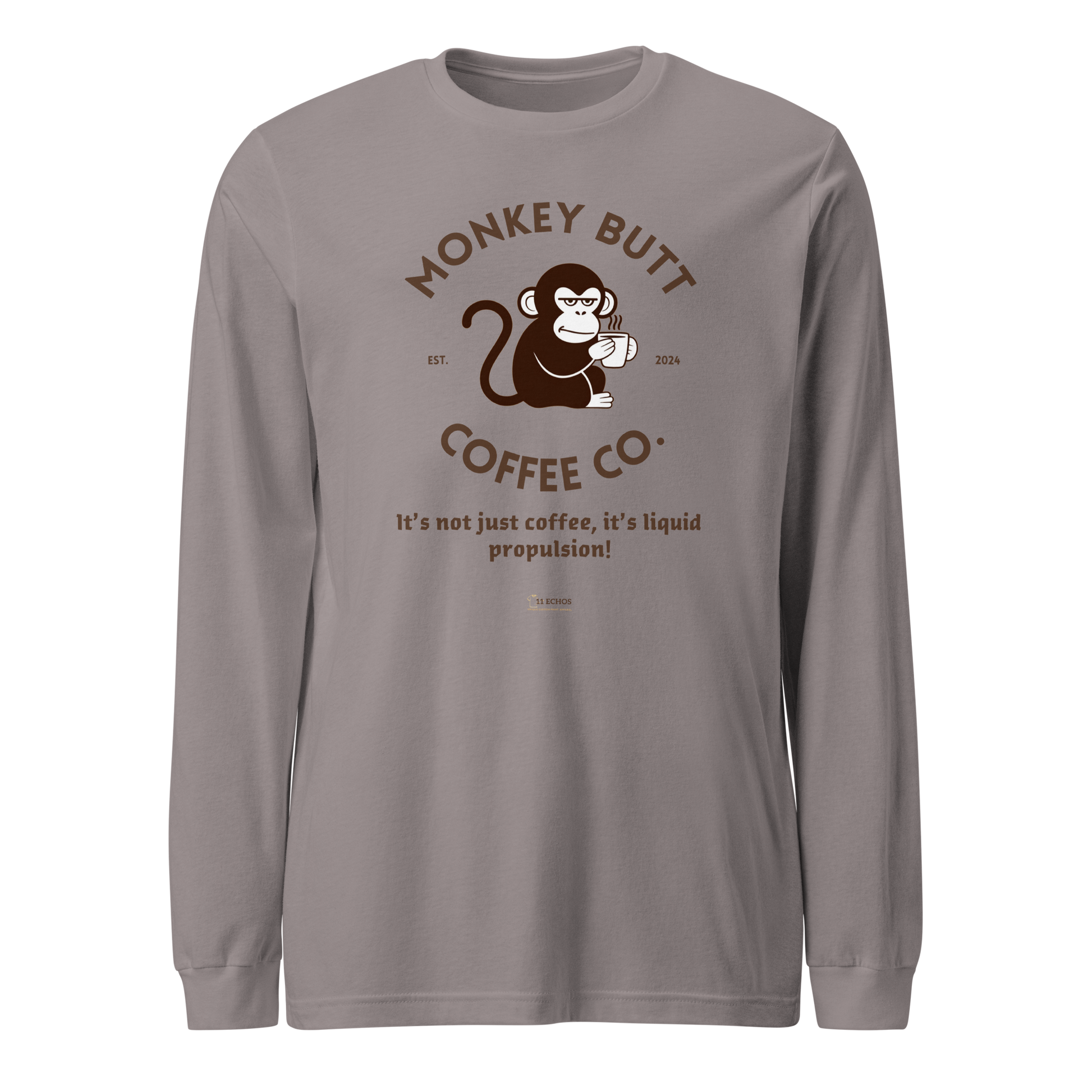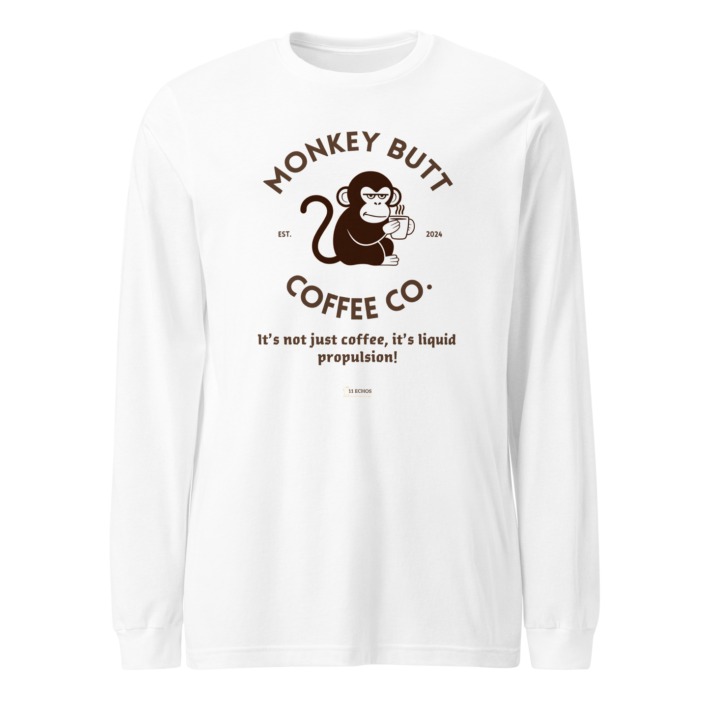 Fuel your day the only way that makes sense—with Monkey Butt Coffee: Liquid Propulsion. This long sleeve tee is for the caffeine-addicted, sarcasm-infused, zero-sleep warriors who know that real power comes in a cup... or a gallon. Packed with adult humor and high-octane attitude, this funny shirt makes a perfect gift for anyone who treats coffee like rocket fuel and mornings like a combat zone. Warning: may cause uncontrollable energy and questionable decisions.