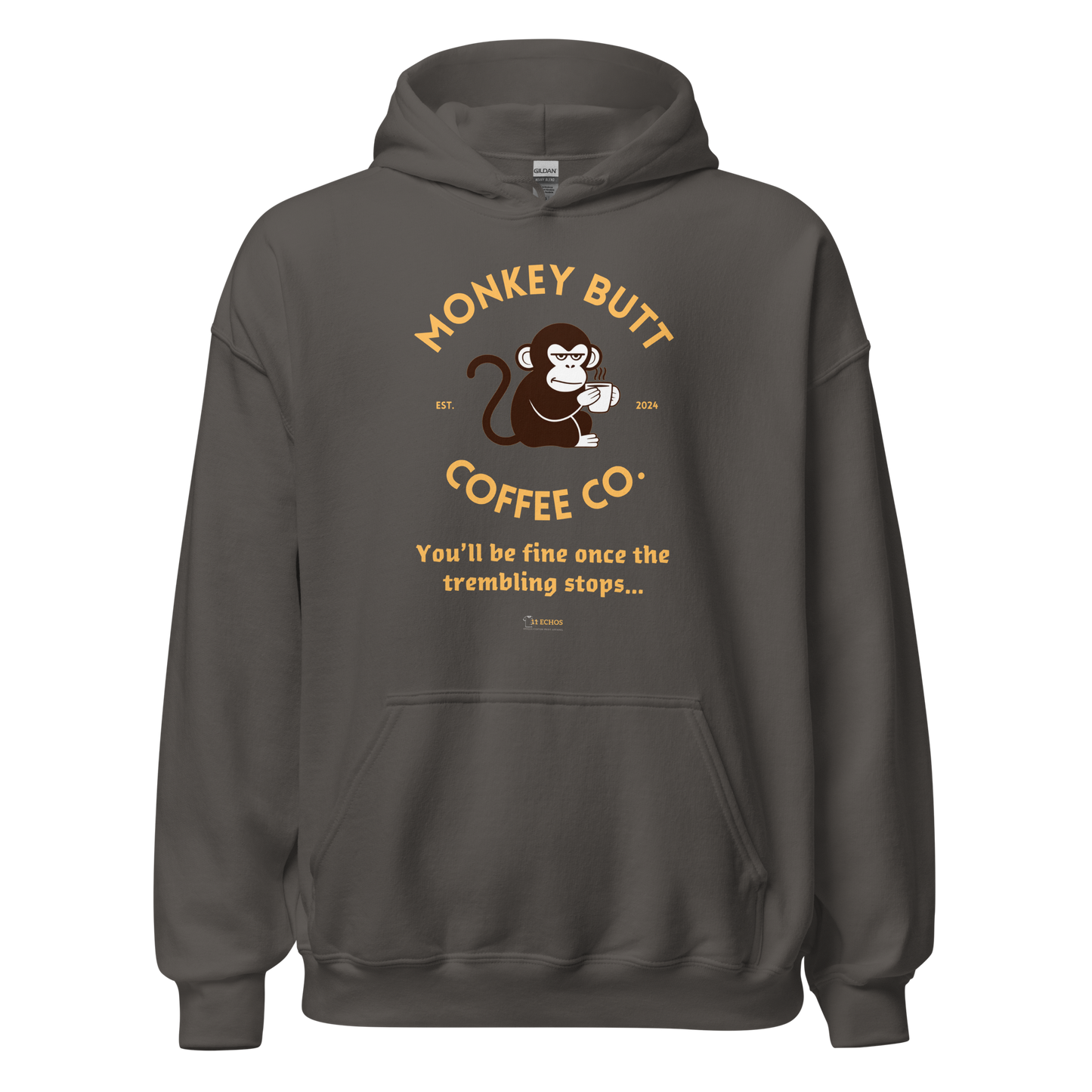 Say goodbye to sleep and hello to the jitters with our Monkey Butt Coffee – You’ll Be Fine Once the Trembling Stops hoodie. Perfect for the over-caffeinated, sleep-deprived, and dangerously optimistic, this shirt packs adult humor into every shaky sip. Whether you're fueling a deadline or just trying to stay conscious, this funny shirt is a must-have for coffee junkies everywhere. Makes a hilarious gift for anyone who treats caffeine like a personality trait.
