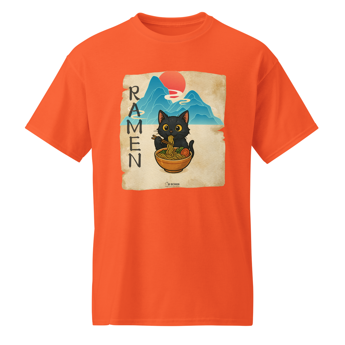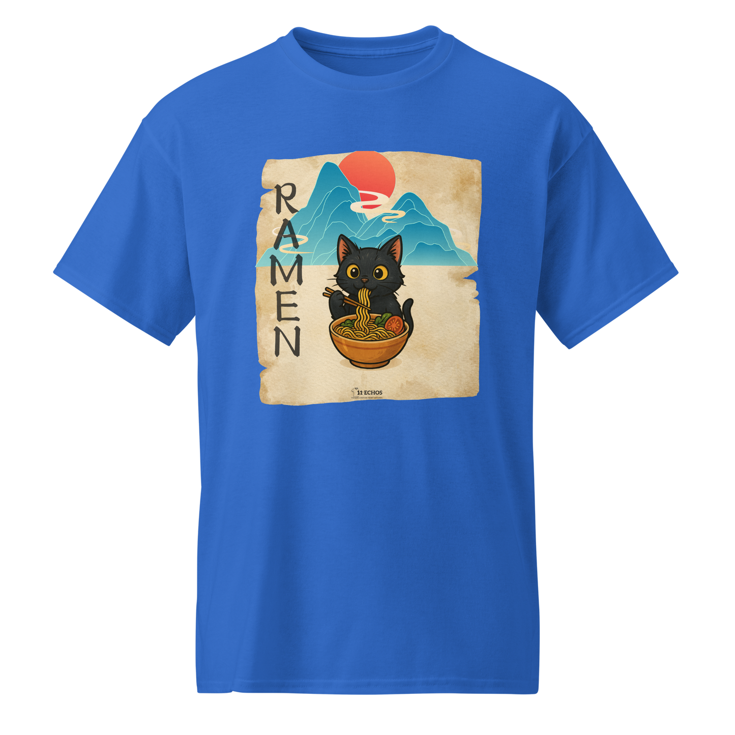 Who knew mealtime could be this purr-fectly hilarious? Our "Ramen Cat" t-shirt features a chonky, wide-eyed feline caught mid-slurp in a bowl of steamy, delicious noodles—chopsticks optional, attitude included. This design blends cozy vibes with culinary chaos, making it the ultimate tee for cat lovers, ramen fans, and anyone who’s ever had dinner interrupted by a curious kitty. Soft, breathable, and guaranteed to stir up smiles wherever you go, this shirt is your recipe for instant comfort (and compliments).
