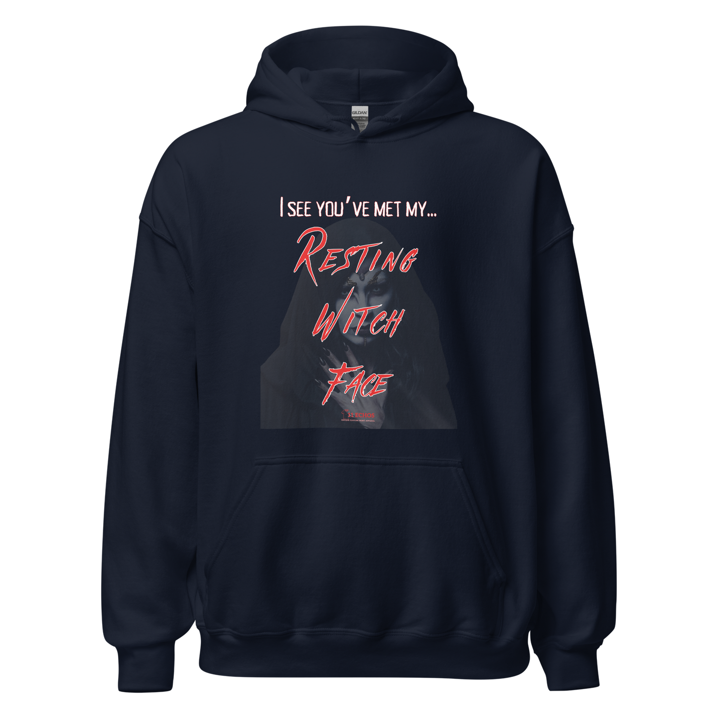 Tired of people telling you to smile? Channel your inner '90s goth and Halloween queen with our Resting Witch Face hoodie — the perfect blend of spooky sass and vintage sarcasm. Made for Gen X souls who still blast "Monster Mash" on cassette and remember when witches were cool before streaming. Soft, comfy, and cut with just the right amount of deadpan, this tee will have everyone spellbound (or slightly afraid to talk to you — win-win). Rock it at the pumpkin patch, haunted house, or just while ghosting people.