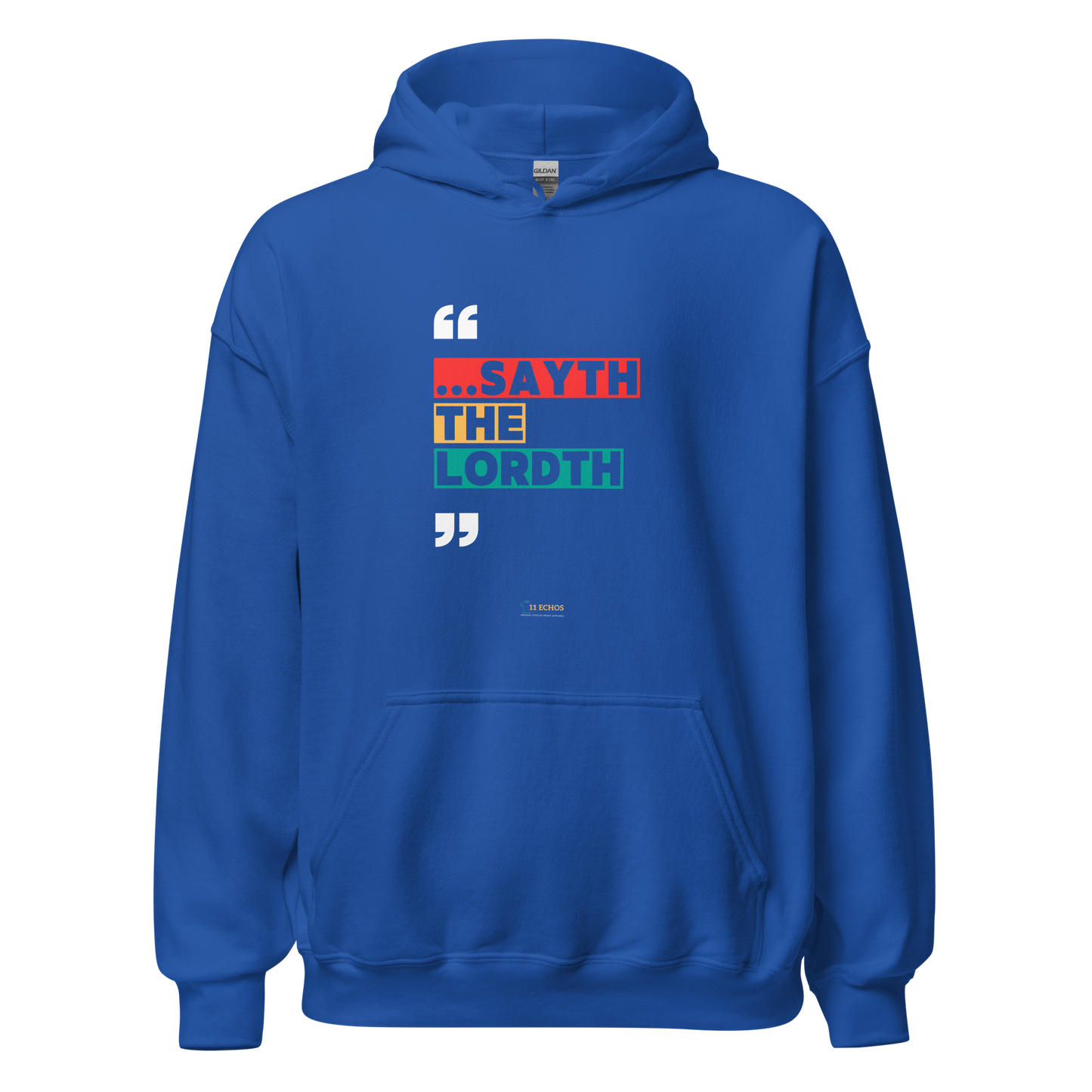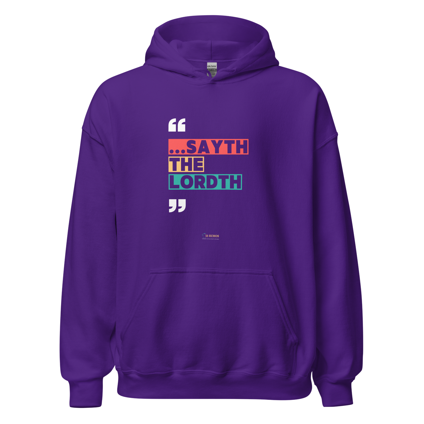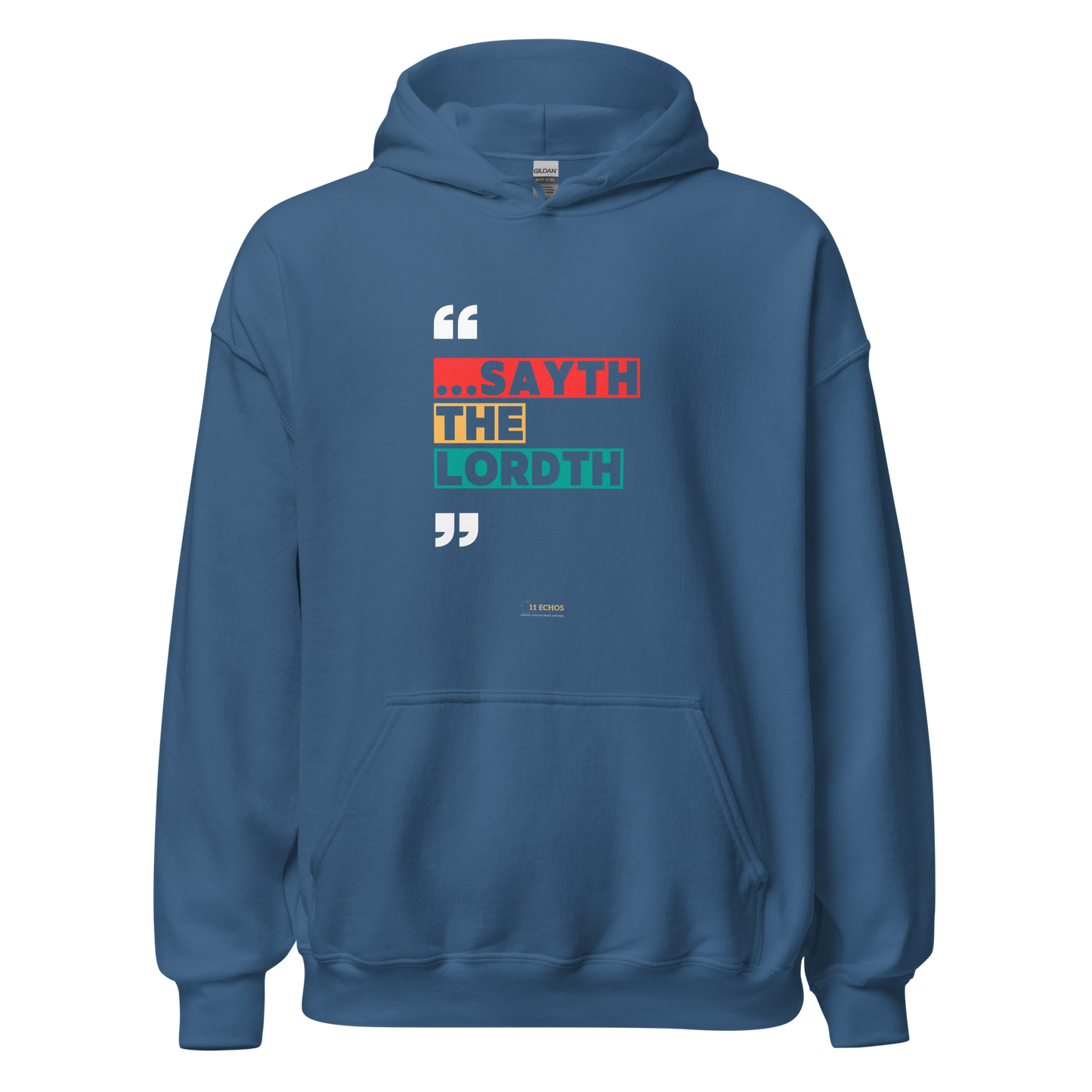 At 11 Echos, we specialize in wearable blasphemy, existential dread, and punchlines that might get you uninvited to family dinner. Our designs are equal parts sacrilegious and stylish—perfect for those who like their humor dark and their hoodies darker. Take our latest drop, "Sayth the Lordth"—a divine proclamation of sass straight from the celestial group chat. Whether you're preaching sarcasm or just tired of the mortal coil, this piece lets you worship at the altar of irony with every thread.