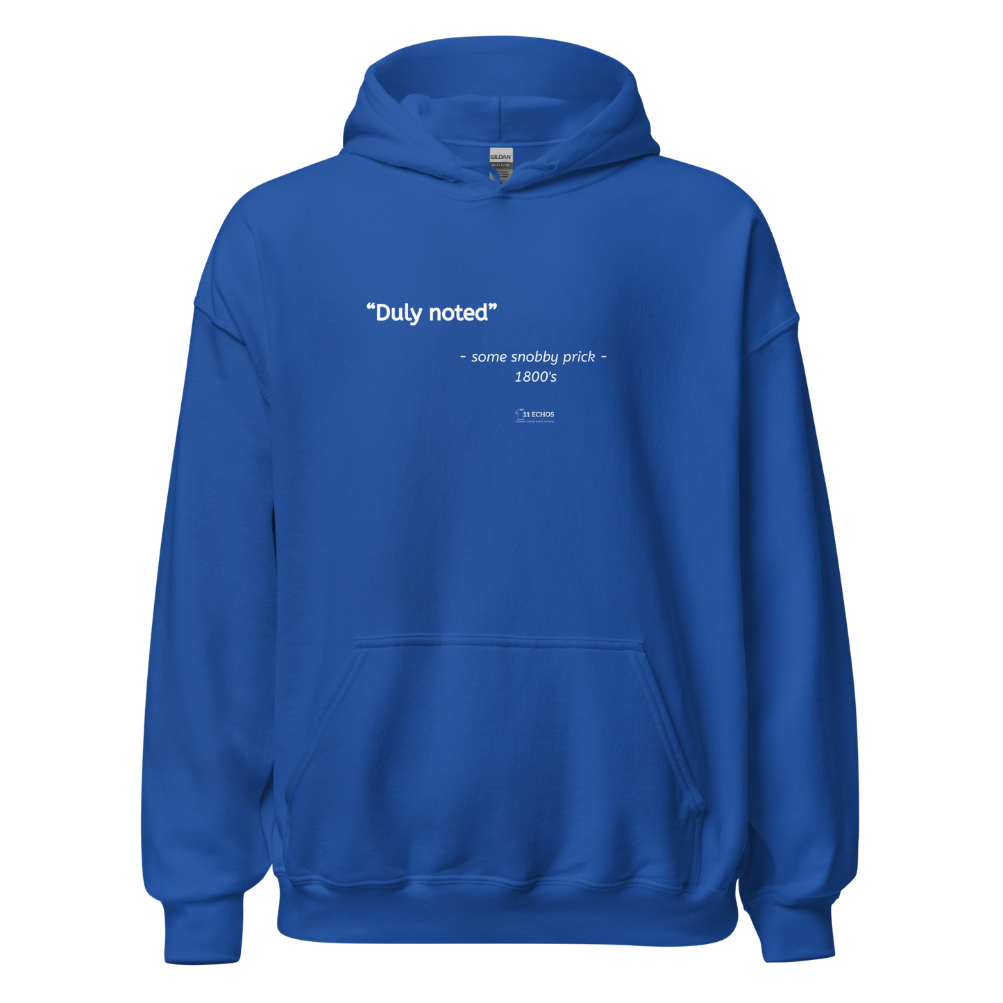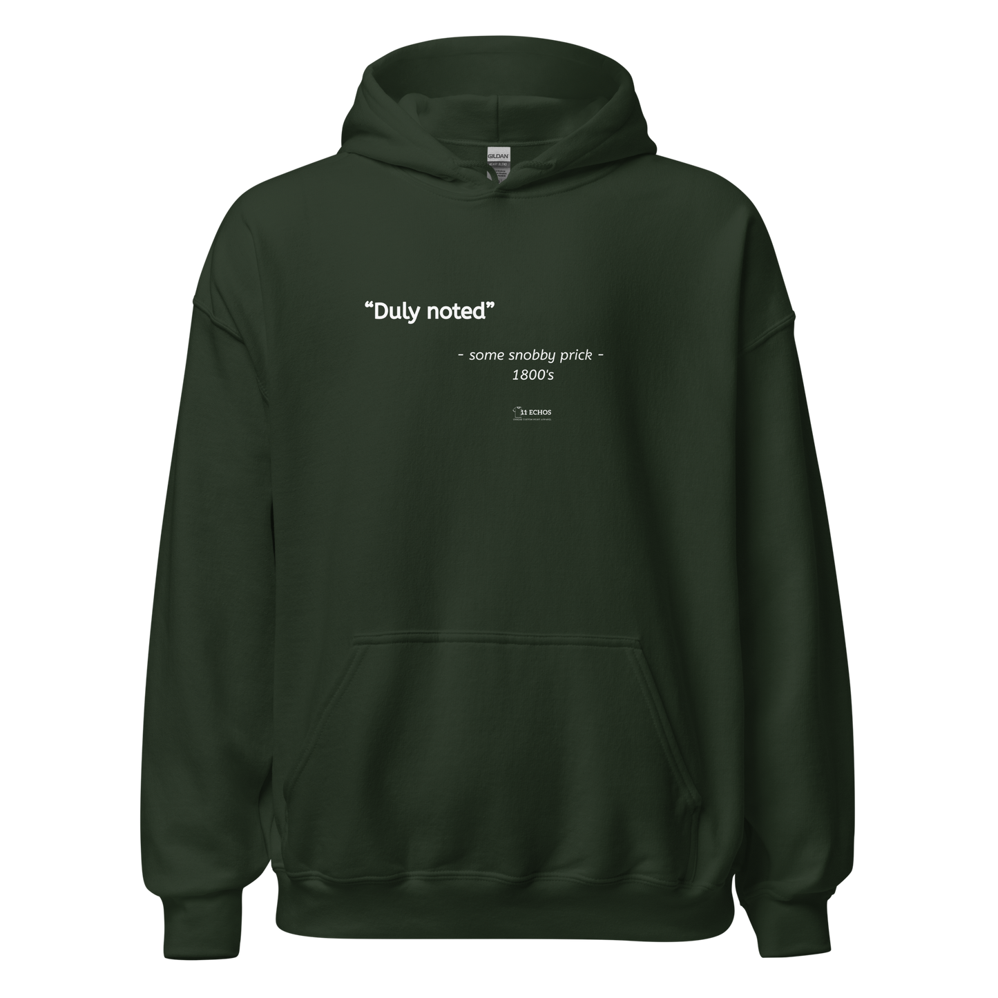 Wrap yourself in warmth and withering sarcasm. This hoodie features the elegantly dismissive phrase “Duly noted,” reportedly whispered by a powdered-wig-wearing elitist moments before ignoring everyone in the room. Soft, snuggly, and oozing superiority, it’s perfect for strolling through the modern world like it’s beneath you. Wear it to tune out nonsense, reject feedback, or simply remind humanity that you’re not here to be moved—you’re here to be mildly inconvenienced.