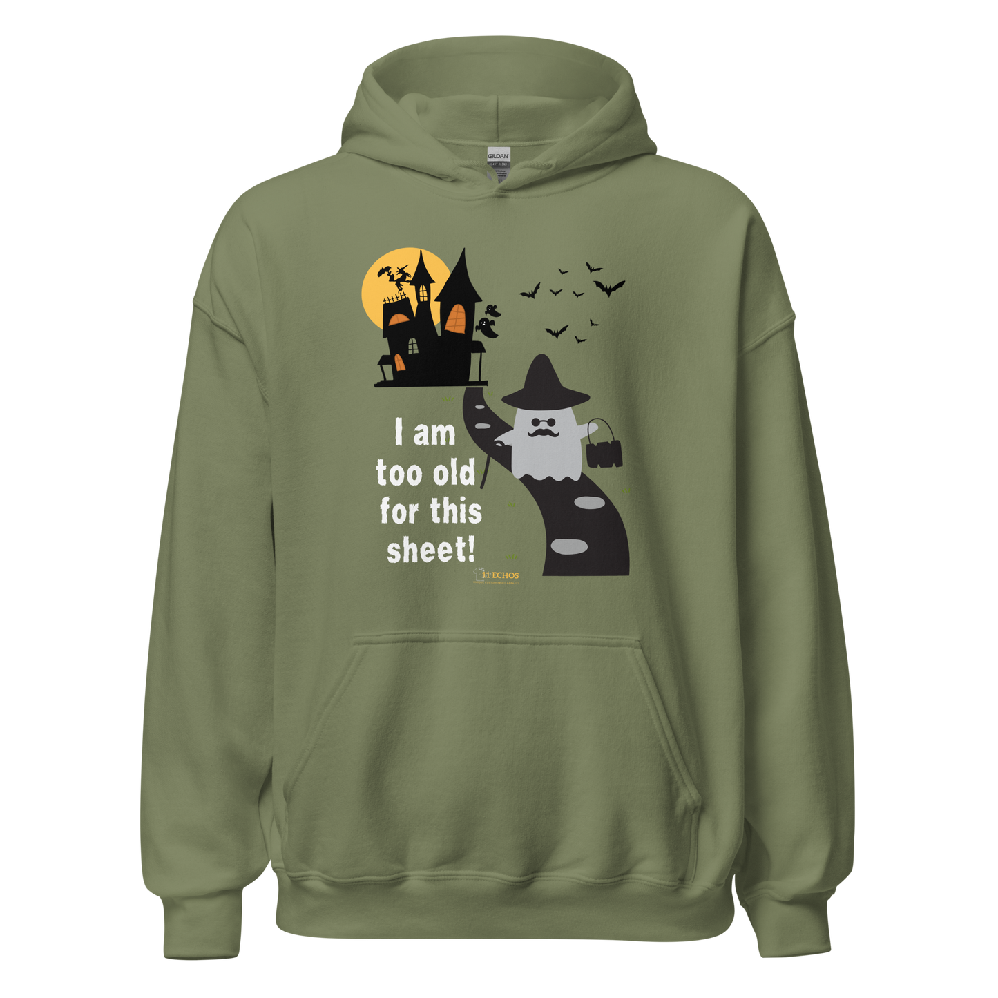 For the Halloween lover who's been there, done that, and is so over it—introducing the “I’m too old for this sheet!” hoodie. Whether you're dodging costume parties, skipping the haunted houses, or just not in the mood for one more pumpkin spice anything, this shirt says exactly what you're thinking. With a cheeky ghostly twist, it's perfect for tired parents, grumpy ghouls, and anyone who's just here for the candy and a comfy seat. Keep it spooky, keep it honest—because some of us are just too old for this sheet!